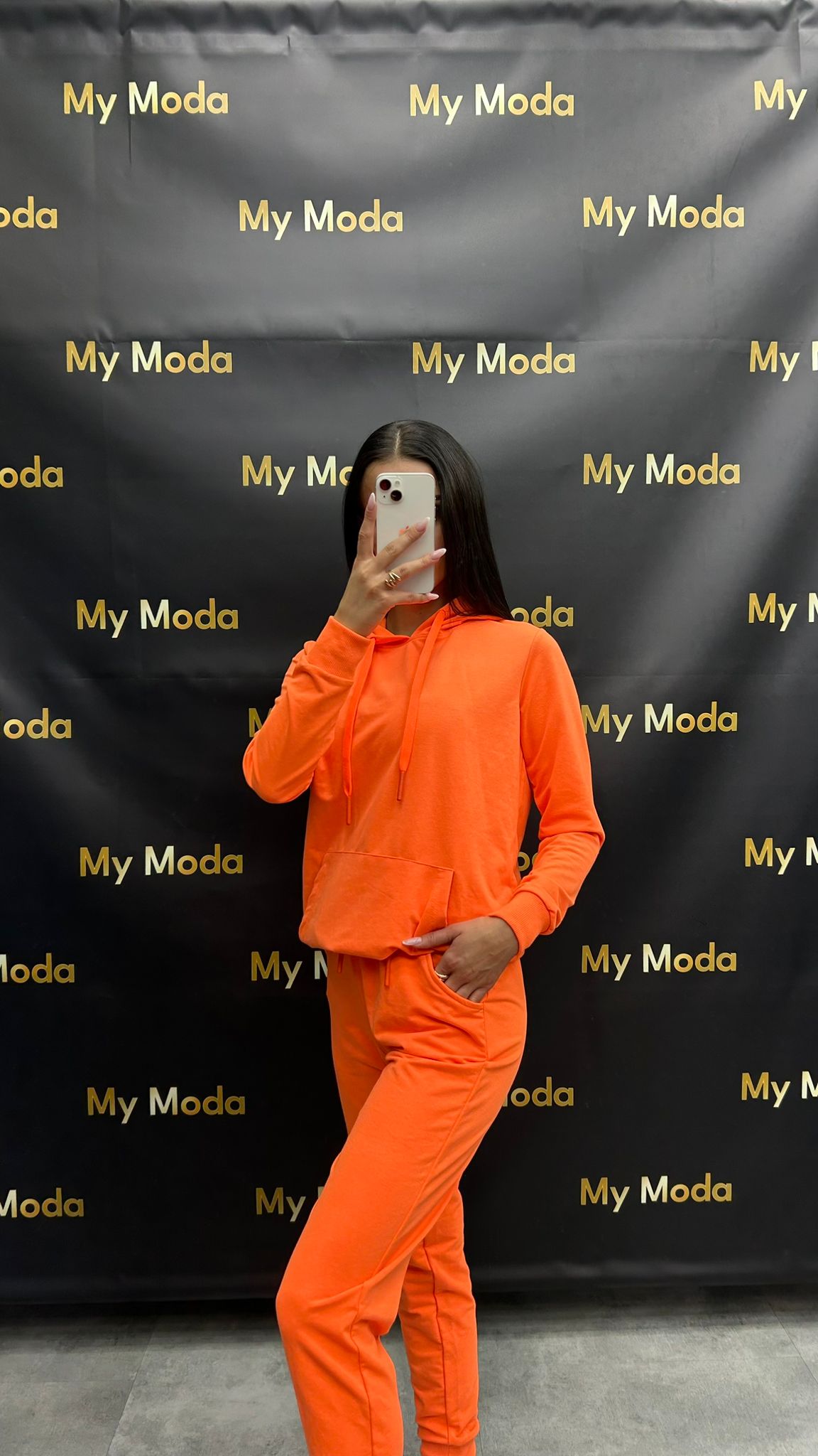 Klasyczny, wygodny komplet dresowy damski z bluzą z kapturem i prostymi spodniami. Wykonany z miękkiej bawełny z dodatkiem elastanu, zapewnia komfort i swobodę ruchów. Bluza posiada kieszeń typu kangurka oraz regulowany kaptur na sznurkach. Spodnie z elastycznym pasem idealnie dopasowują się do sylwetki. Gładka, jednolita tkanina i żywe kolory sprawiają, że komplet nadaje się zarówno na co dzień, jak i do relaksu lub podróży.
