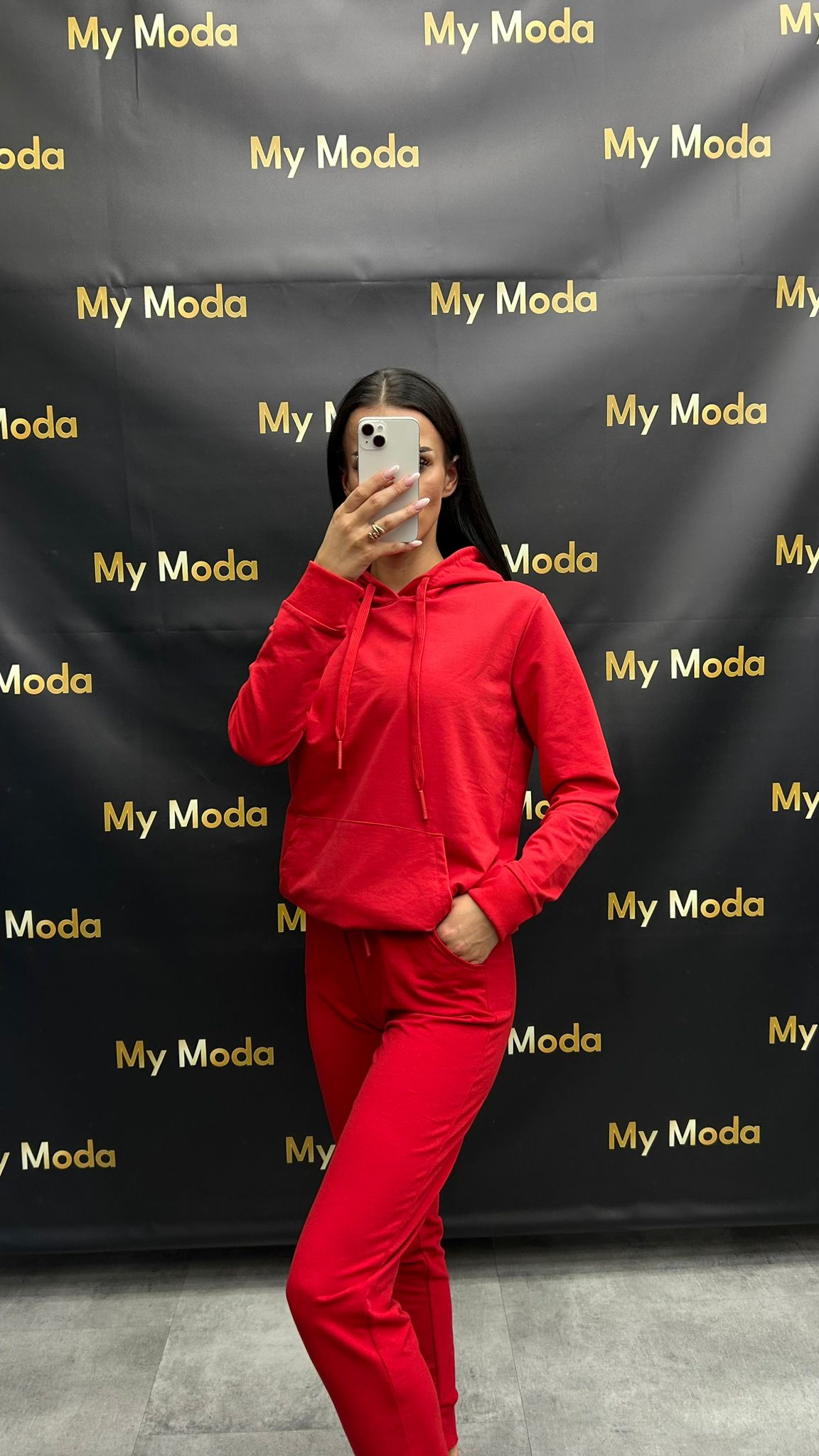 Komplet dresowy damski bawełniany – klasyczny krój z kapturem My Moda